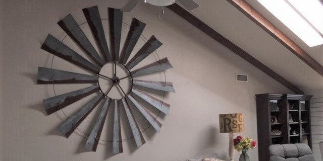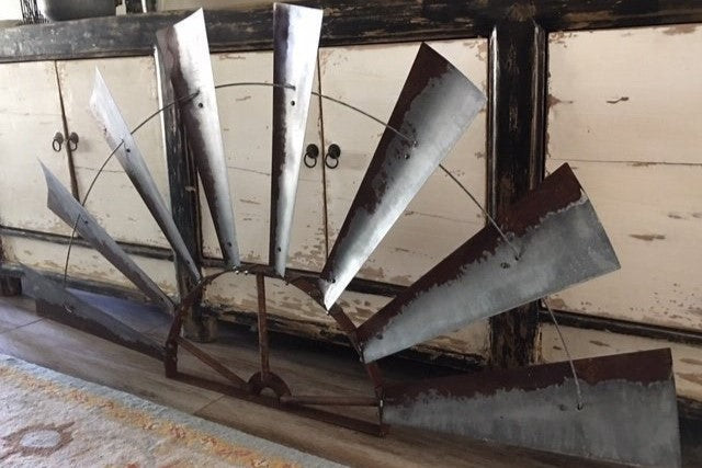 Pictures don't do this Windmill any justice, Its HUGE and is perfect for large wall spaces, great rooms and other places that need an eye catching, unique accent. This Windmill is a true stunner. Its made from authentic functioning windmill parts, and then rusted to an old vintage look. No two are the same.